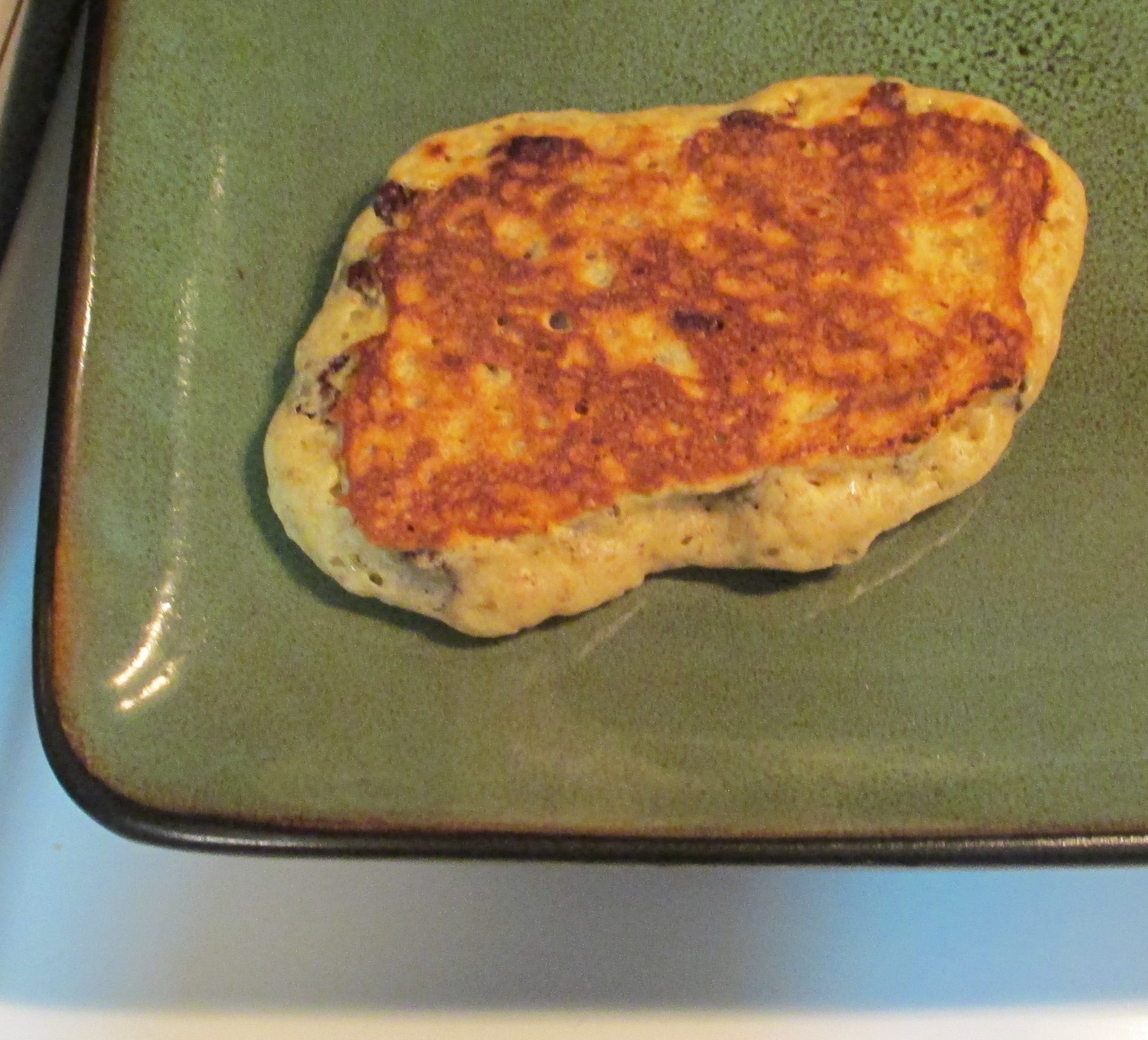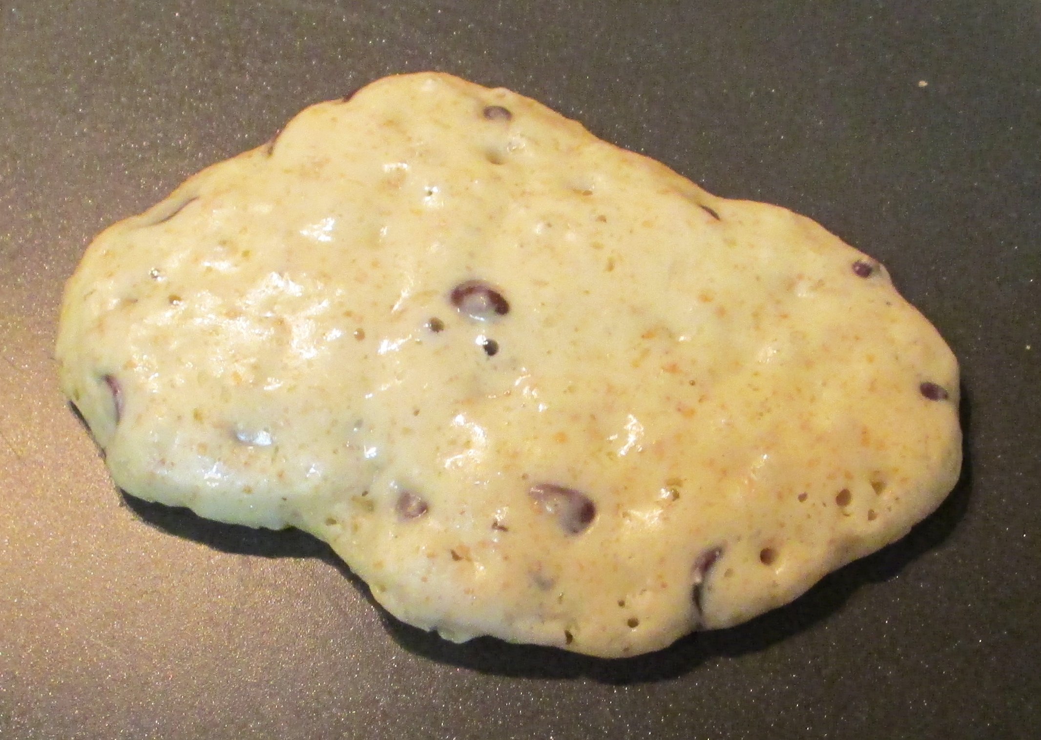 The second half of the cooking is harder to judge, because you can’t tell just by looking at the top. The second half usually takes less time. When you think it’s done, try to flip it to check. If it sticks too bad, it probably needs to cook longer. The color won’t be as dark as the first side, because the texture is rougher (all those bubbles).