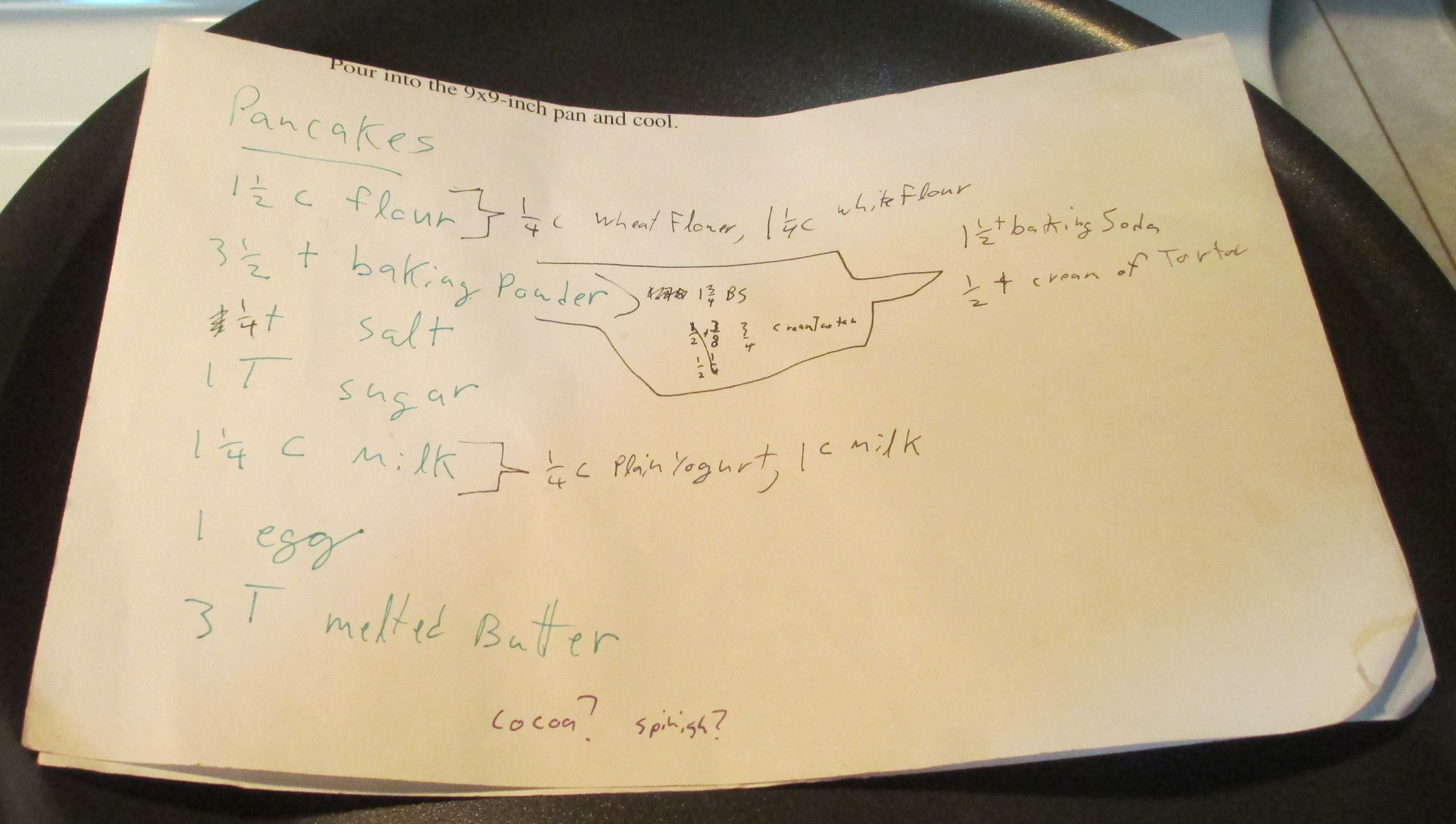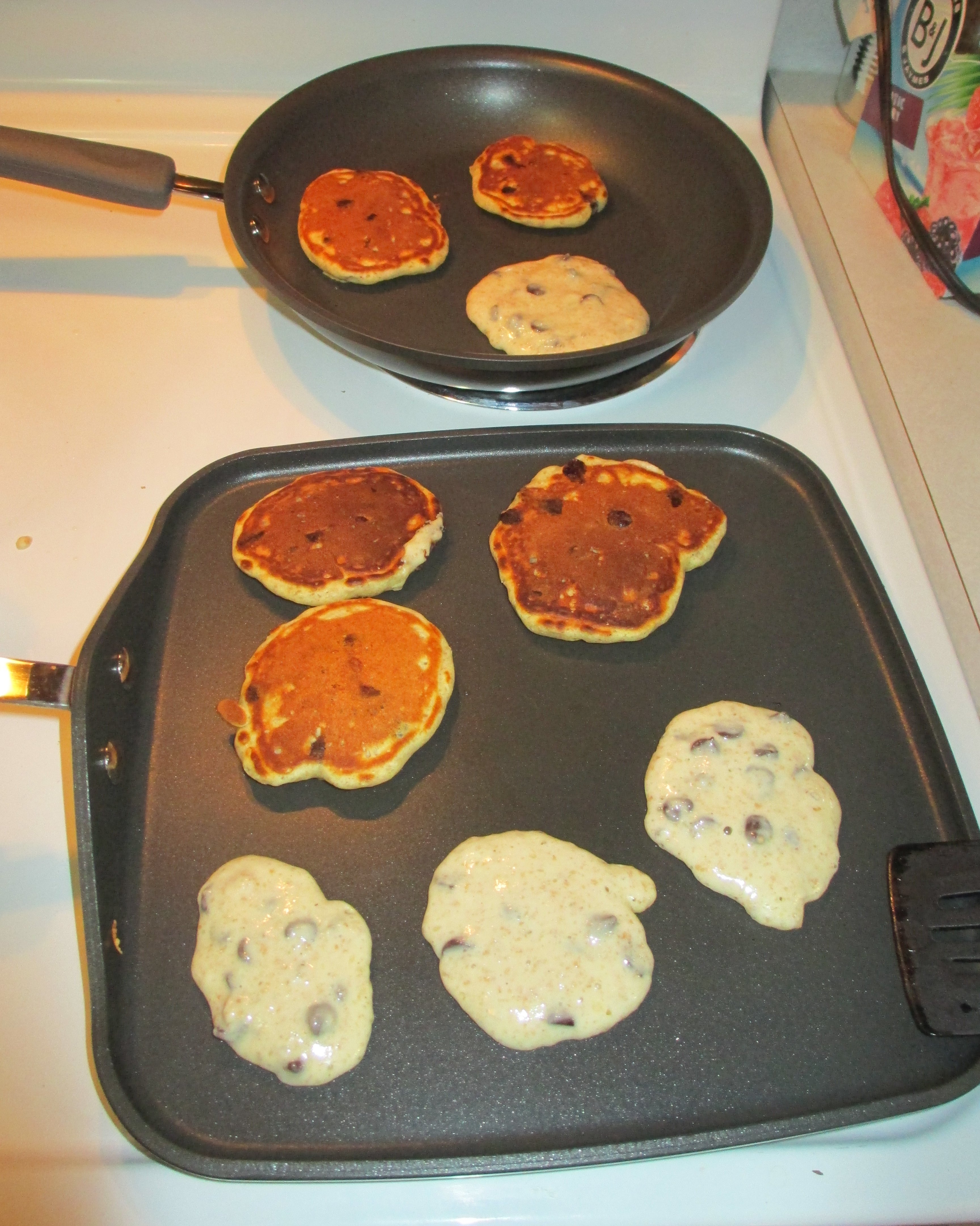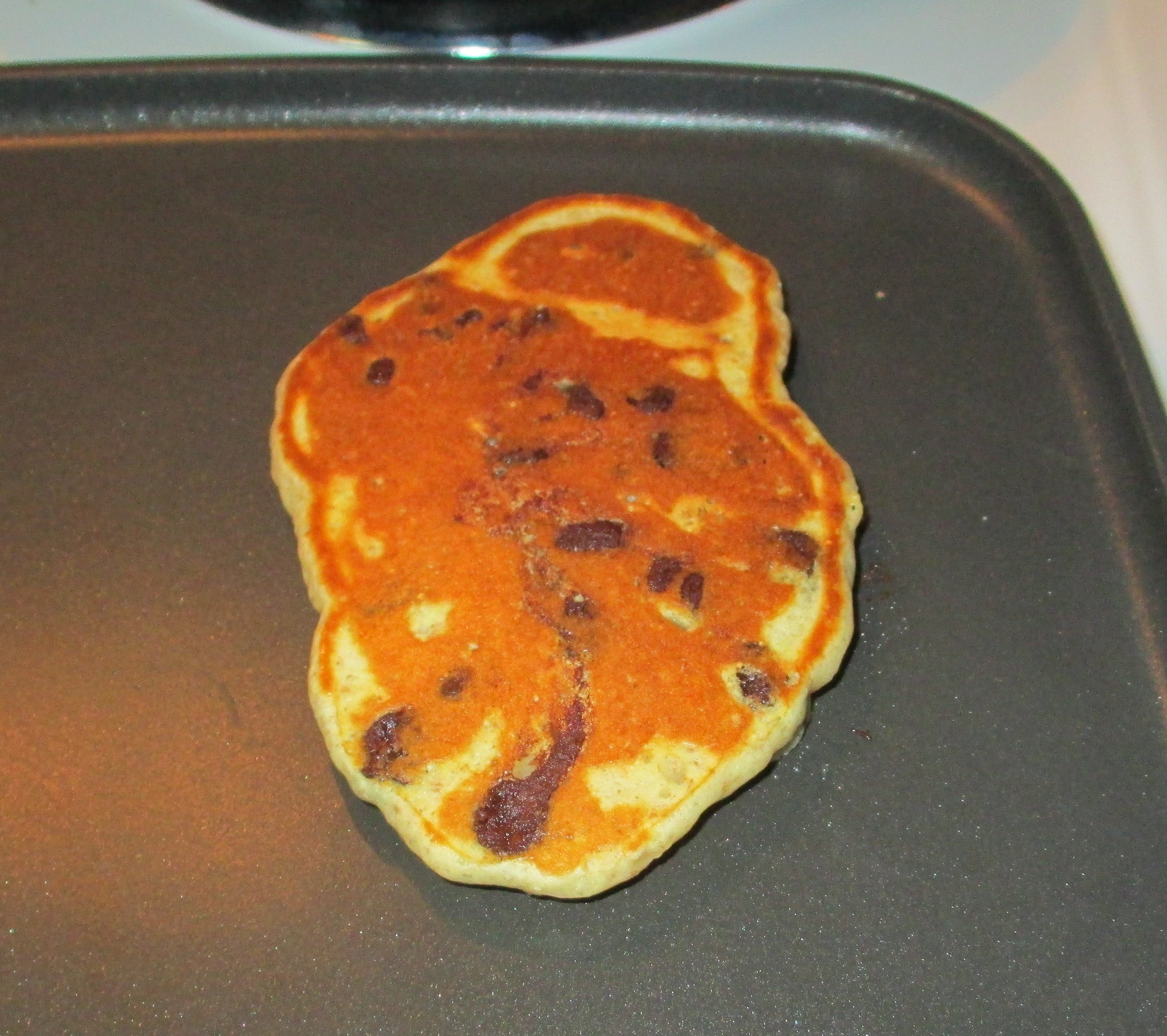 One day, I wanted pancakes. Then I realized: I can make pancakes! I got a pancake recipe from the internet, and I made pancake, and I realized: Pancakes are really easy to make. And: I can make chocolate chip pancakes whenever I want!!!!