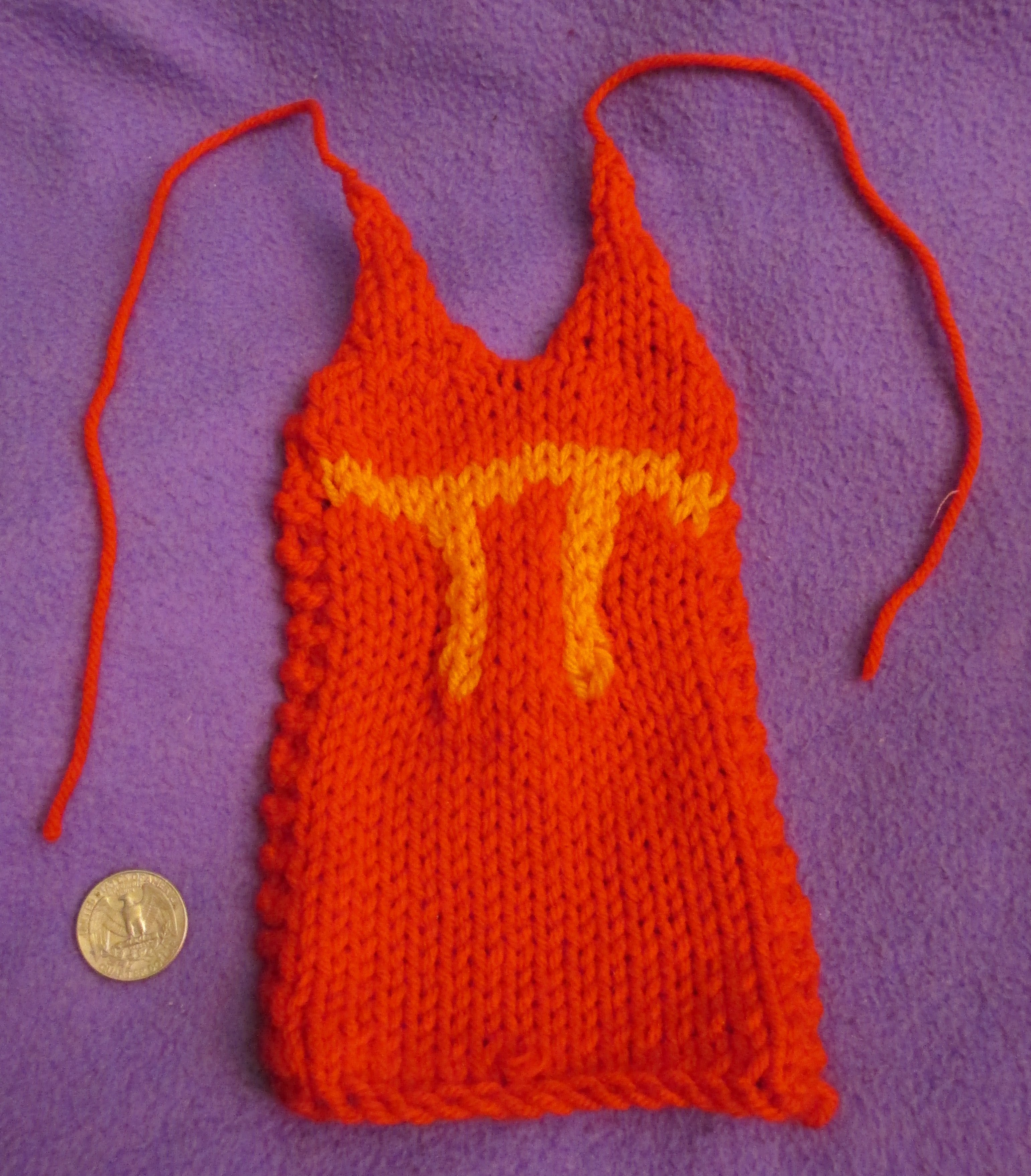 This is my Knit Pi. I would give you the pattern, but I didn’t use one. I used some techniques I learned recently making a stuffed cow and ‘human beans’. (both of which I intend to post about … eventually)