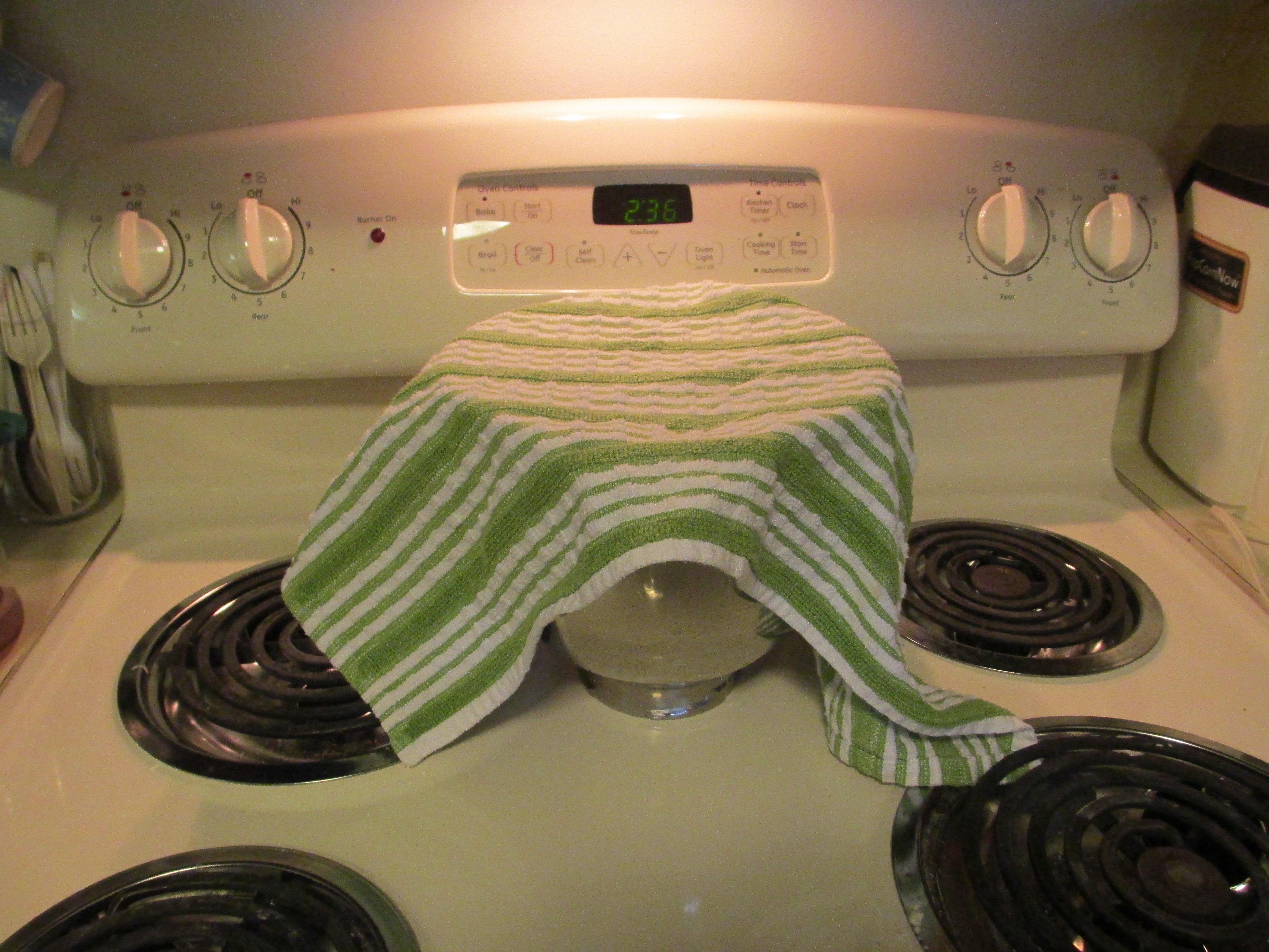 Scrape into a largish bowl and cover with a clean towel.