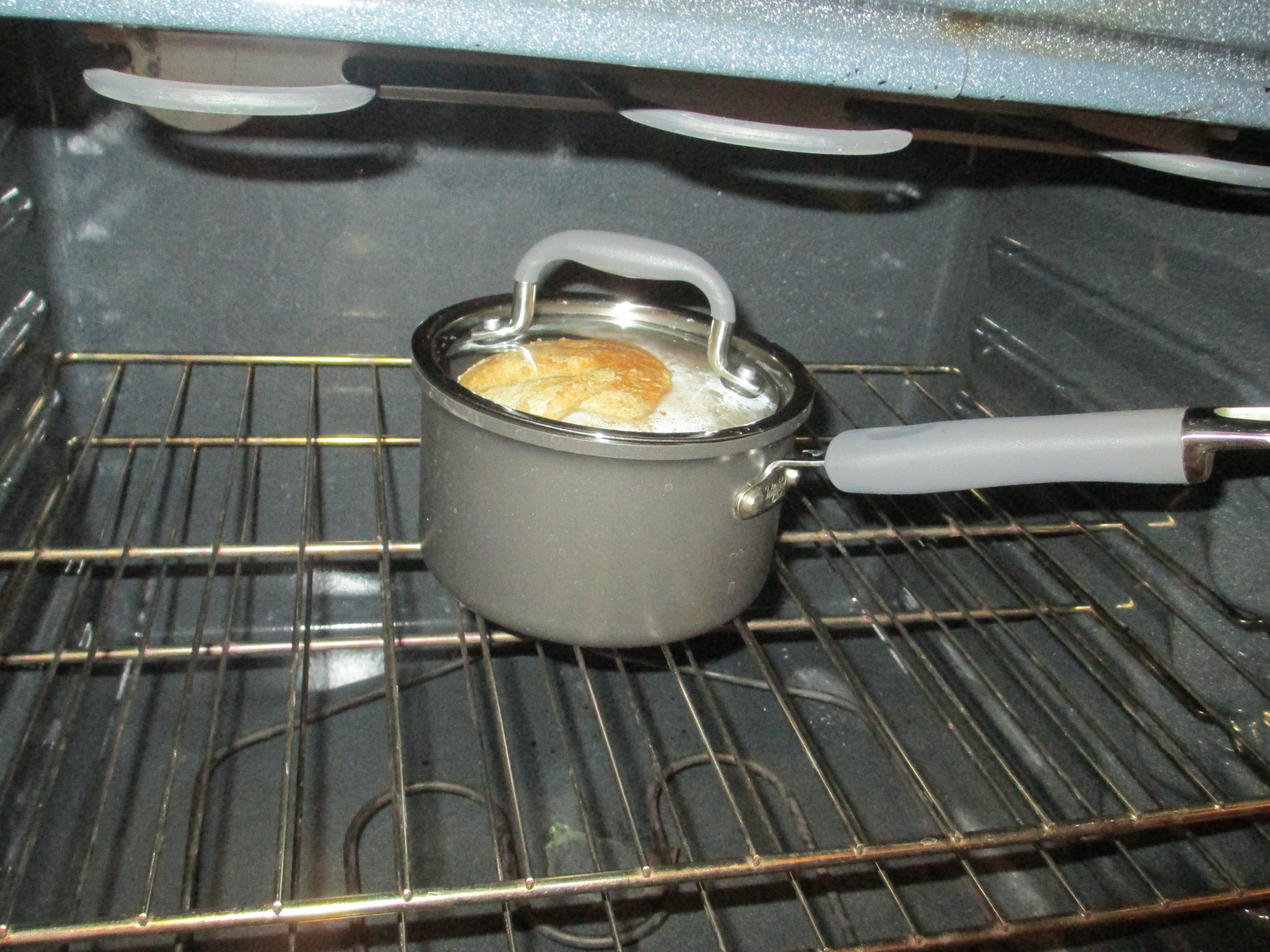 Dump it into an oven-safe sauce pan (2qt size works well).