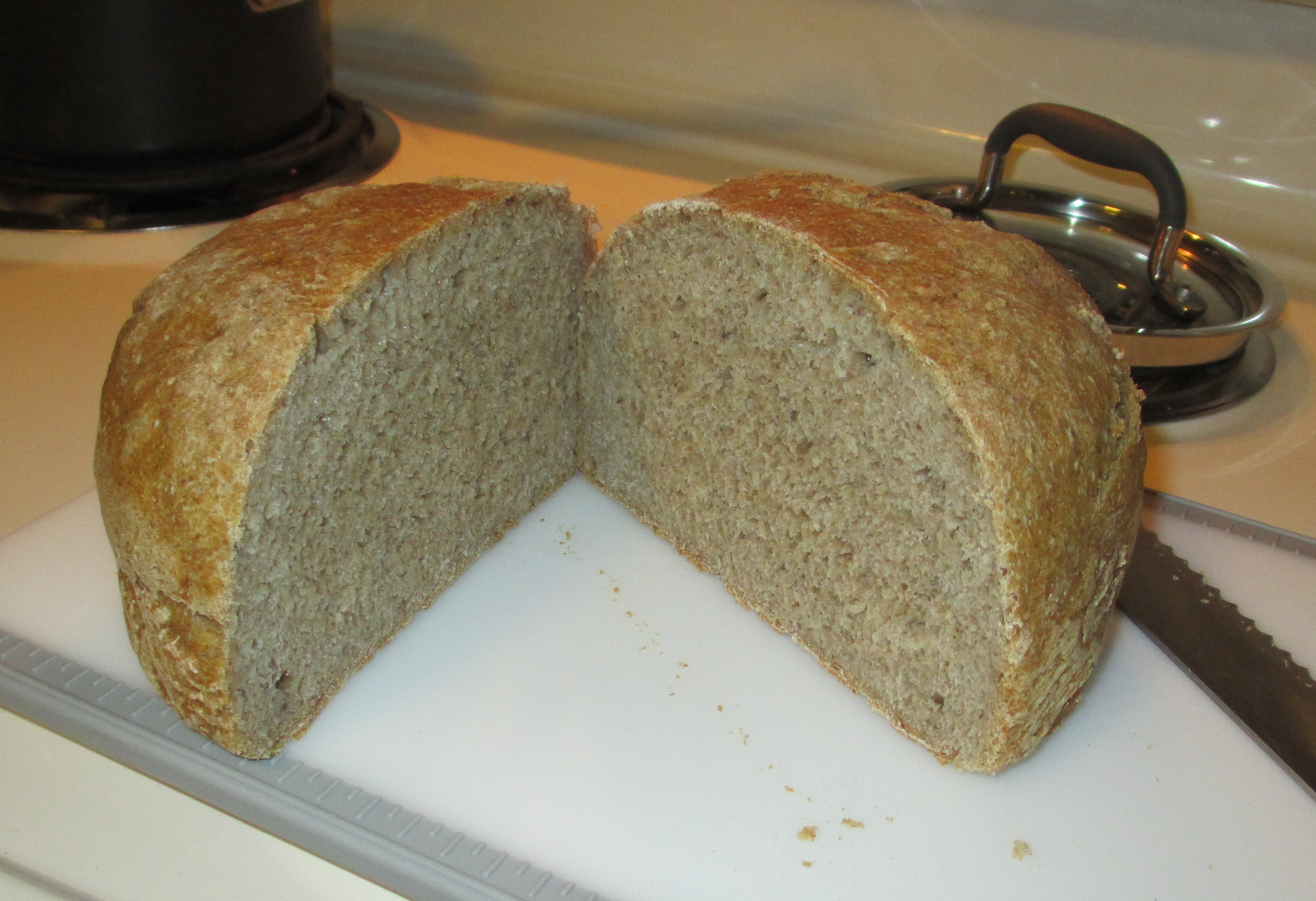 There’s a secret about baking bread: it’s not that hard. It’s related to a secret about recipes: a recipe isn’t the only way to make a thing, it is *one* way to make the thing. You can bend a bread recipe pretty far and still get bread. I tend to look at any recipe more as a starting point than a set of firm rules. (This recipe started with all white flour, no chia, and more salt.)