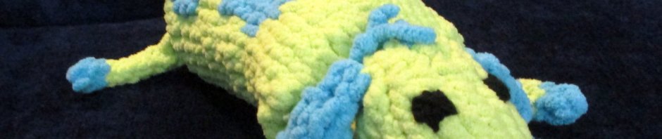 Then I took it with me the next time I saw my mom, and proudly showed it off. Her response: “Well…At least it’s recognizable as a dog.” She’s not the only one that thinks it’s dog. I think the main problem is the torso is too long. The tail sticking up doesn’t help any (I didn’t mean for it to do so). My mom blames the ears, says they’re too big. Actually, she first blamed the color, because it’s not the right color for a cow … because dogs are green and blue? I thought about adding horns or an udder, but I’m not sure I could pull either off convincingly, and I’d need to add another color.