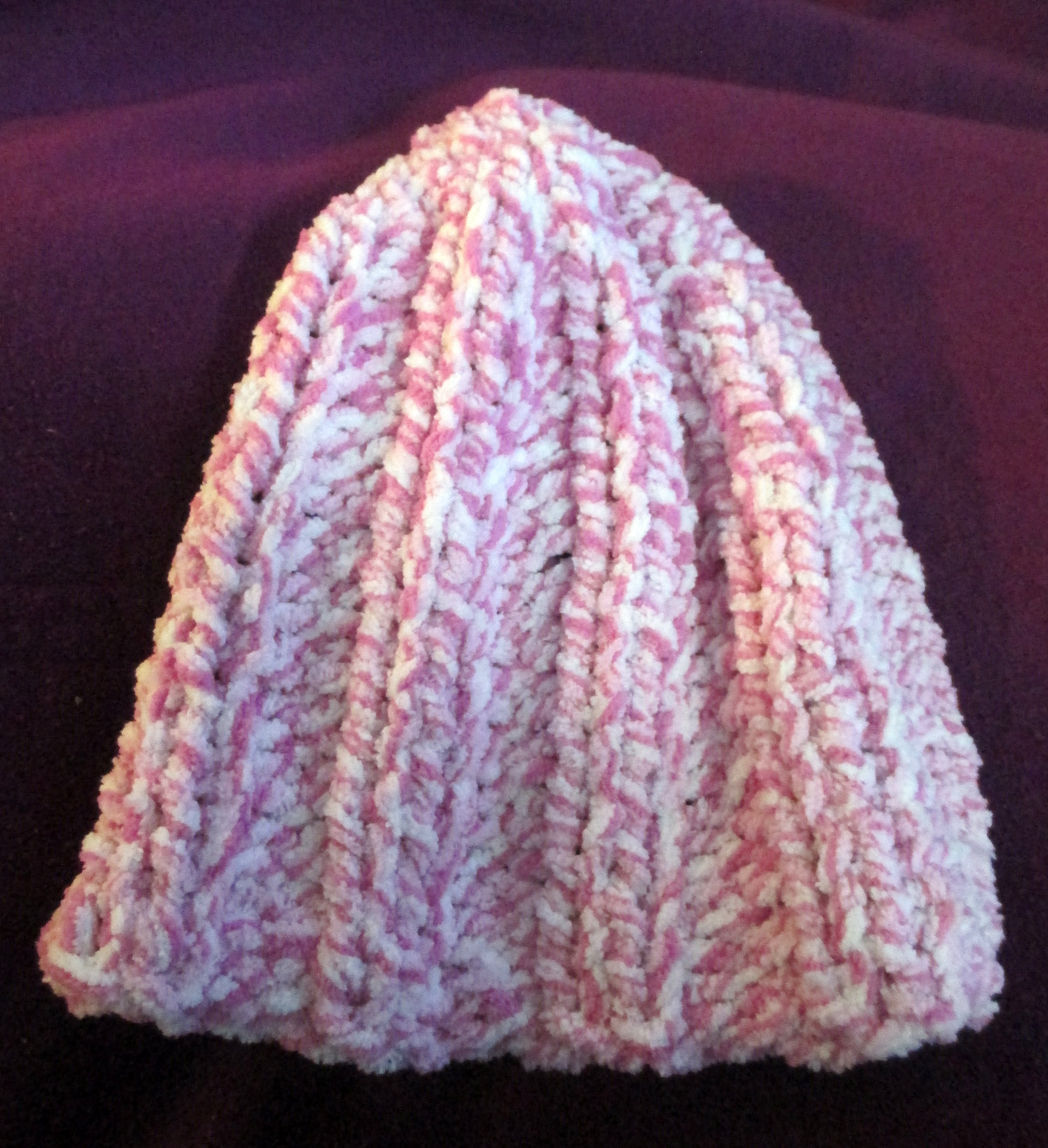 I was getting together with some friends for Easter, and I had Easter gifts for the kids. Then, the day before, I realize there was one more kid coming than I had planned for. So, of course, I decide to knit her a hat. Luckily, I have a nice little stash of Blanket Yarn.