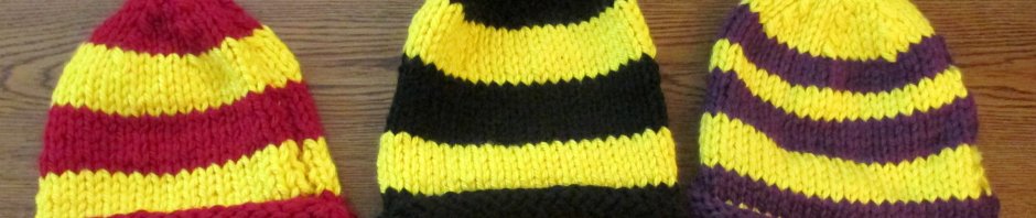 I have three cousins who are siblings who each went to a different one of the three state colleges in Iowa. This year I made them each a hat with the colors of their school.